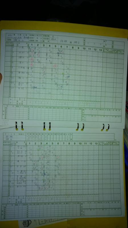 | チーム | 1 | 2 | 3 | 4 | 5 | 6 | 7 | 8 | 9 | 計 |
